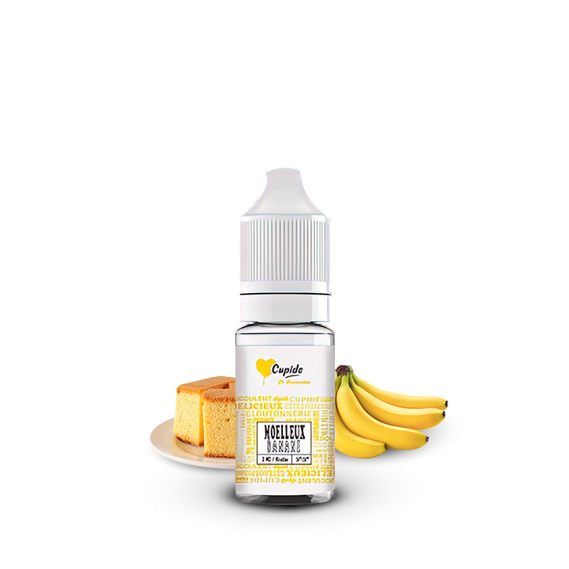 Le Eliquide Moelleux banane de la marque Cupide est fabriqué en France par Maison Fuel au format 10 ml et au dosage 50% propylène glycol végétal / 50% glycérine végétale.