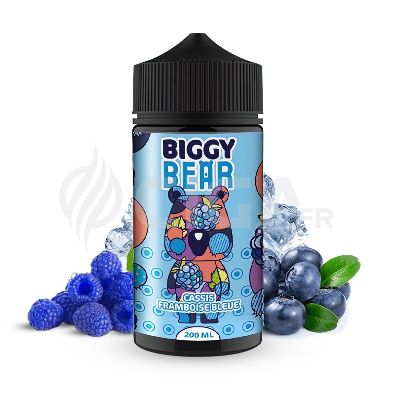 Le e-liquide Cassis Framboise Bleue de la gamme Biggy Bear est fabriqué en France par Secret's Lab au format 200 ml au dosage 50% PG / 50% VG.