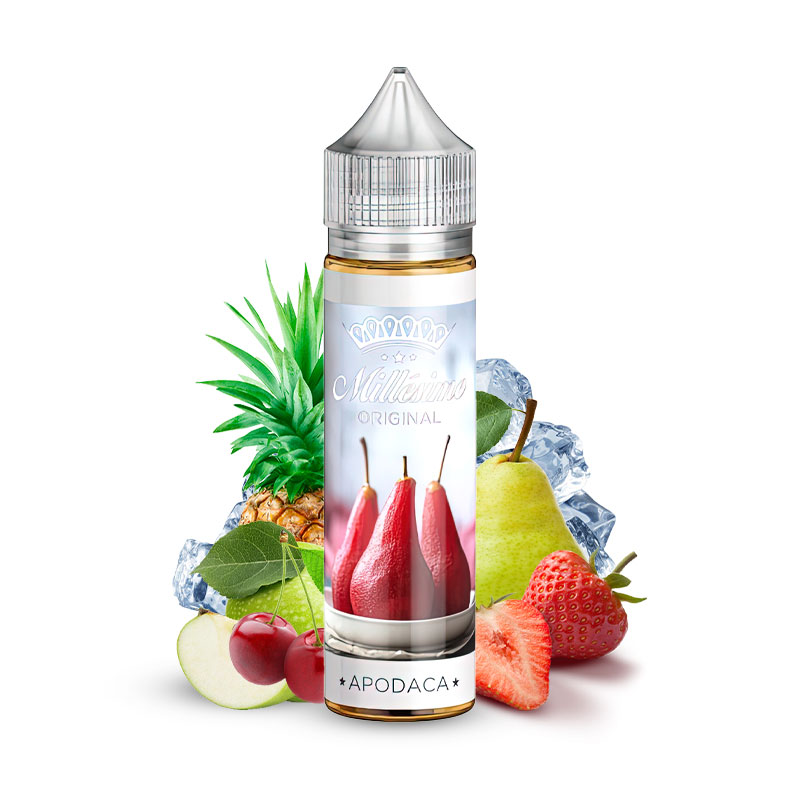 L'Apodaca de Millésime est un e-liquide fruité qui donne une délicieuse interprétation innovante de la poire, agrémentée de nuances de pomme, de fraise, de cerise et d'ananas.