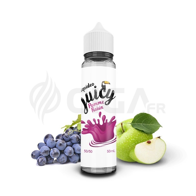 Le e-liquide Pomme Raisin de la marque française Liquideo est fabriqué en France au format 50 ml et au dosage 60% PG / 40% VG.