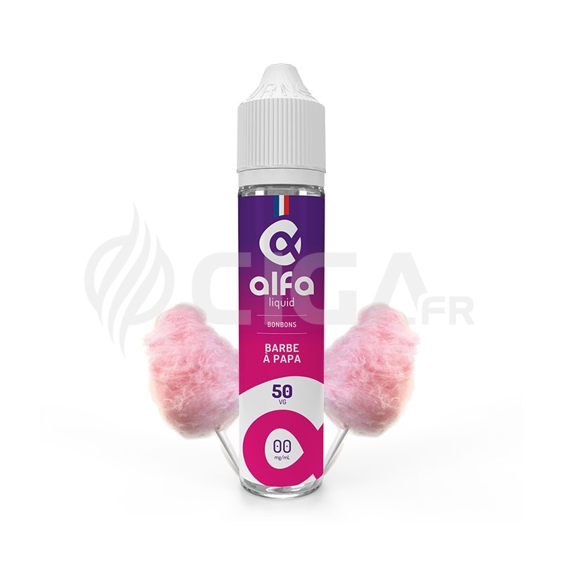 Le e-liquide Barbe à papa de la marque française Alfaliquid est fabriqué en France au format 50 ml et au dosage 50% PG / 50% VG par Alfaliquid.